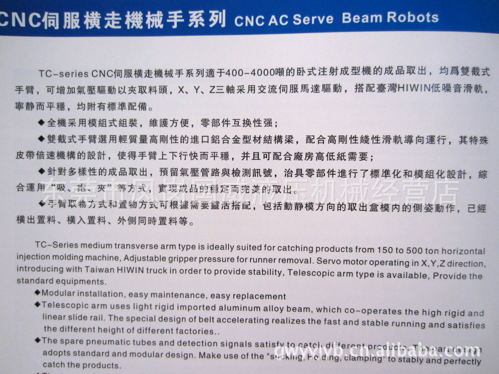 斜臂式机械手:横走机械手系列:CNC伺服横走机械手系列: