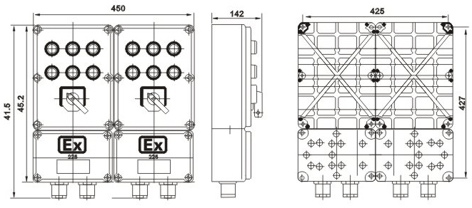 2.控制箱由增安型外壳,隔爆型元件(指示灯、电流表、按钮、开关)及接线端子等组成。