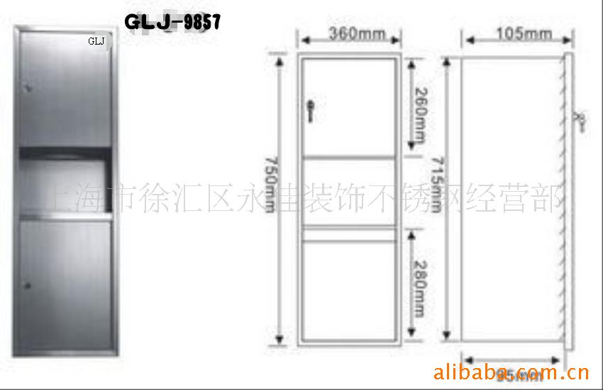 本公司是生产厂家、专业生产酒店用组合型不锈钢擦手纸柜系列产品、带垃圾桶擦手纸柜、挂式、入墙式、尺寸规格齐全、可来图来样加工.公司产品材料304不锈钢.厚度1.0mm.我们的产品价格优惠,质量保证,