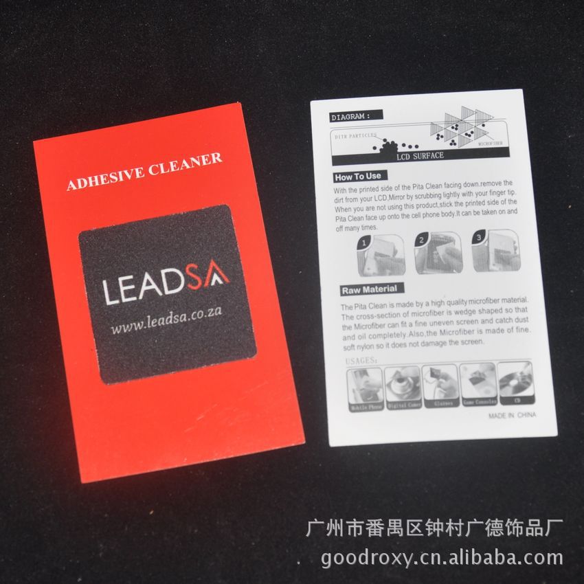 ● 正面为超细纤维布料,可擦试LCD屏幕的指纹,污渍等,背部可以反复黏贴,不易脱落,粘贴干净无痕迹。