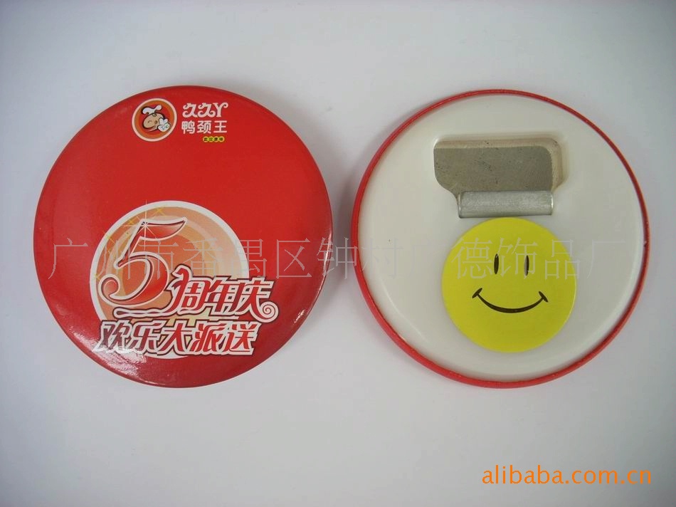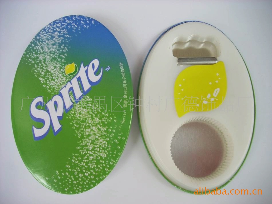 【产品特色功能】马口铁开瓶器由马口铁加精美印刷过光胶组成。图案,logo,尺寸,形状等均可按客户要求定制。外观精美,可以做出客户富有,做工精细;功能奇特,与众不同,价格低廉,带有您公司logo的小礼品深受广大消费者喜爱,是广告促销之良选,促销效果显著。
