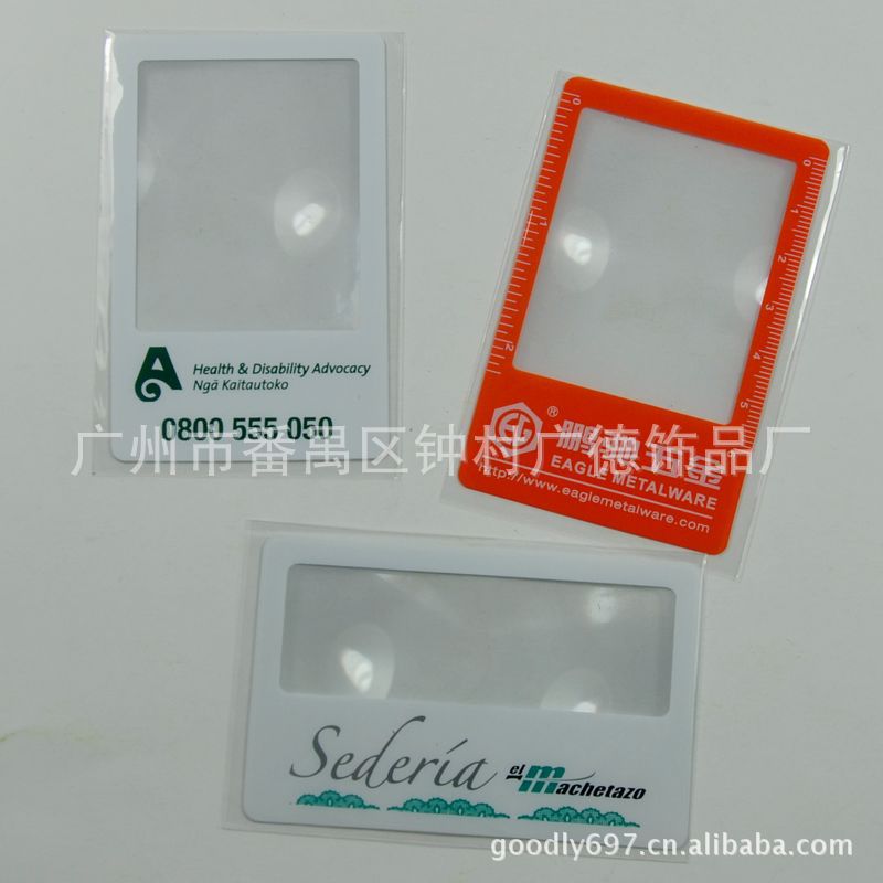 | 特性 | 1.生产快捷,优质质量,价格低廉,适合用于广告宣传,促销馈赠,派送品 2.具有放大字体的效果 |