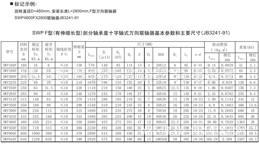 SWP F型(有伸缩长型)部分轴承座十字轴式万向联轴器(JB3241-91)