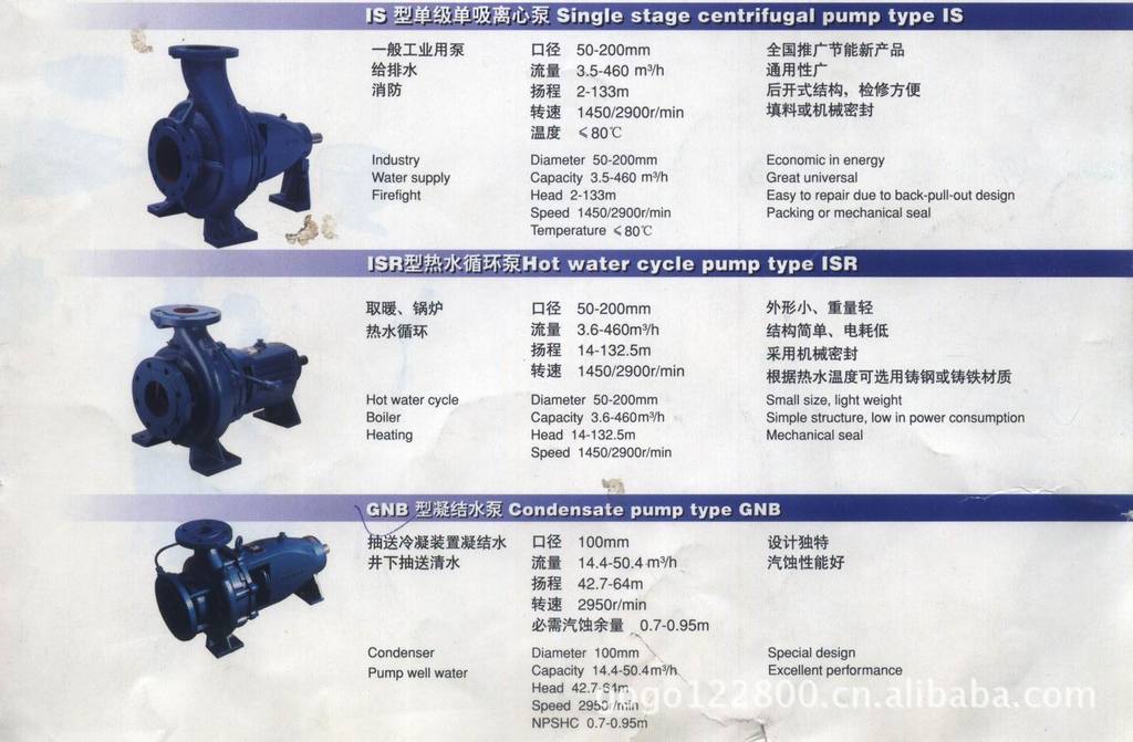 · 采用国家推荐使用的高效节能产品IS型泵的水力模型, 因此水泵效率高,性能范围广 |