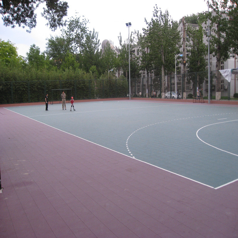 ◆方便性:安装快捷,维护简单。安装时地板间以锁扣连接,为使安装后相邻两地板块配合紧密,安装时可使用橡皮锤敲击地板接缝,不需任何胶水和钉子,通常四人半天即可完成一块标准篮球场地铺装或揭起。平时维护室外只需用水冲洗即可,室内使用拖把清洁,真正实现零成本维护;