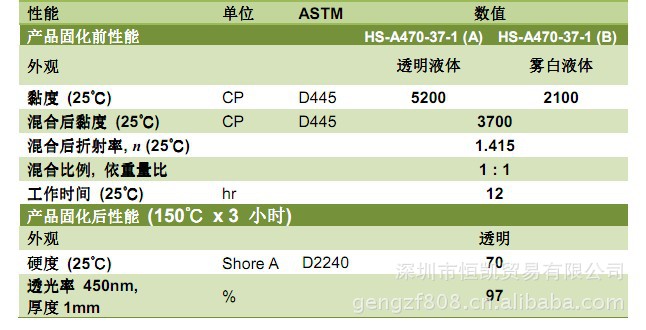 HS-A470-37-1 A&B LED封装用胶为透明双组份加成型硅胶
