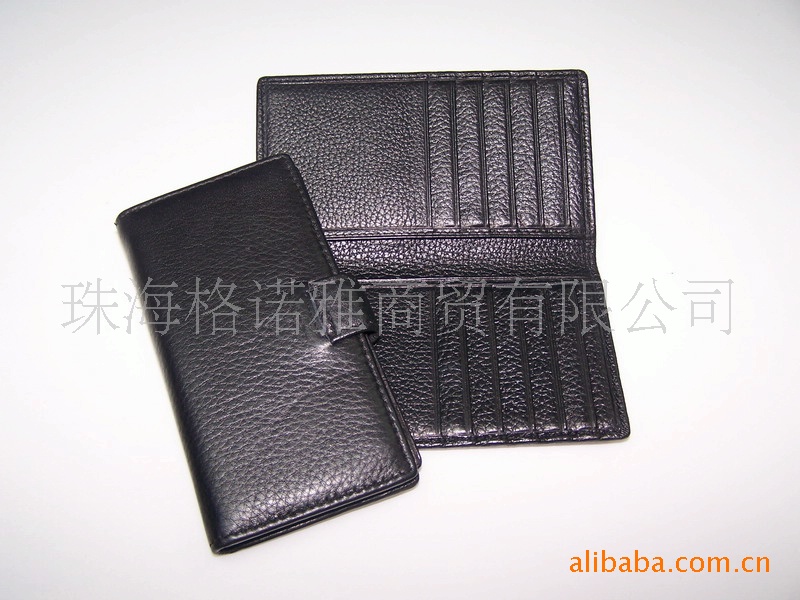 这是适合做商务与促销礼品的套装皮具——名片夹与银行卡包,头层真皮制作,手感好,款式庄重。