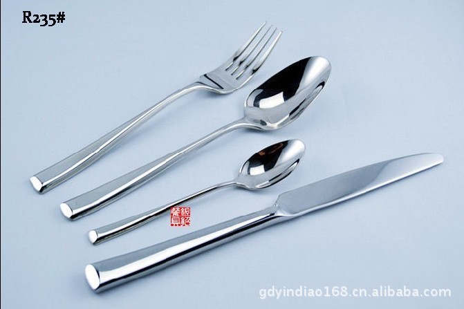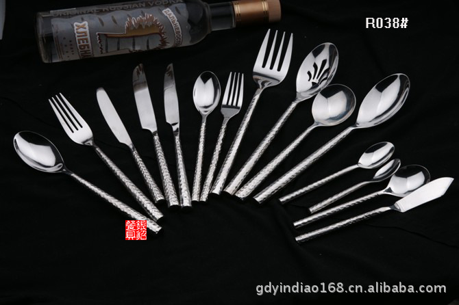 各种不锈钢餐刀,餐勺,汤勺,牛油刀,牛排刀,水果叉,蛋糕叉,咖啡更,茶更,糖更,雪糕更等。产品选用进口高级不锈钢加工生产而成,不沾油,耐磨耐用,做工考究,环保卫生,不发黑,不变形.整体设计精致典雅,带有微翘造型手柄,美观大方,又方便手持。加长、紧凑叉头,方便您叉取蜜饯、水果和西点等各种食物,是您日用、旅行、野营、和送礼的最佳选择!
