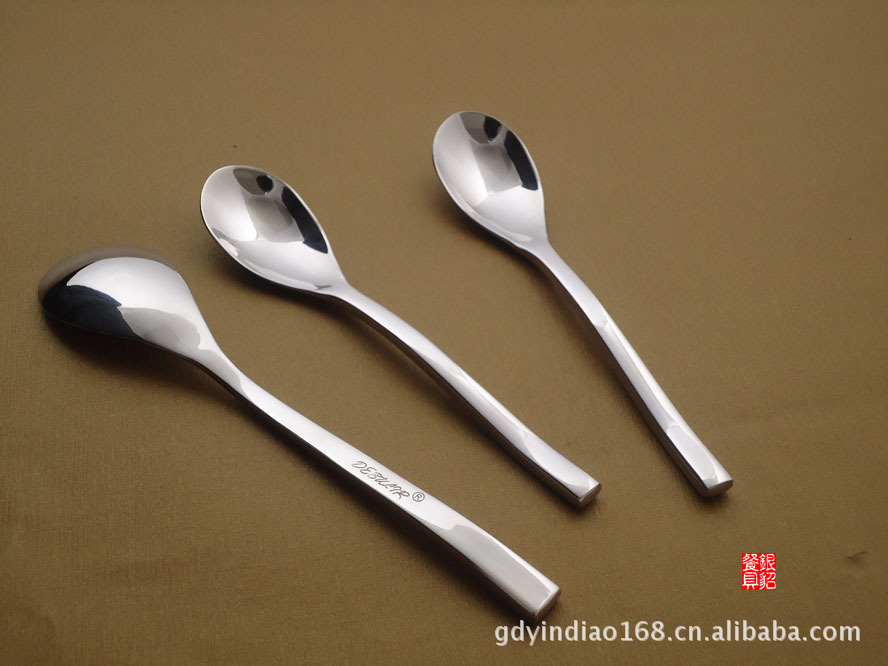 各种不锈钢餐刀,餐勺,汤勺,牛油刀,牛排刀,水果叉,蛋糕叉,咖啡更,茶更,糖更,雪糕更等。产品选用进口高级不锈钢加工生产而成,不沾油,耐磨耐用,做工考究,环保卫生,不发黑,不变形.整体设计精致典雅,带有微翘造型手柄,美观大方,又方便手持。加长、紧凑叉头,方便您叉取蜜饯、水果和西点等各种食物,是您日用、旅行、野营、和送礼的最佳选择