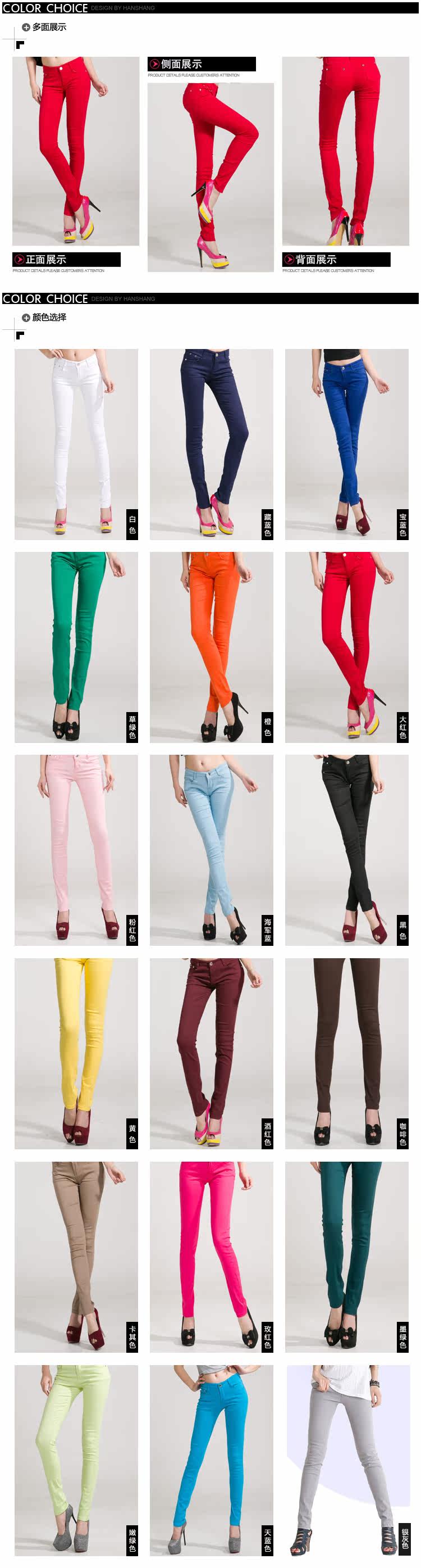 性价比最高的一款彩色牛仔裤!用料,做工,力求做到100%,不偷工减料!同类产品我们敢说质量最好!价格最低!为你打造爆款没有后顾之忧!