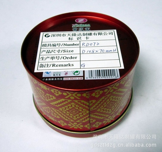 印刷:铁罐盖、身外面四色印刷,内过光油;底双面光油。