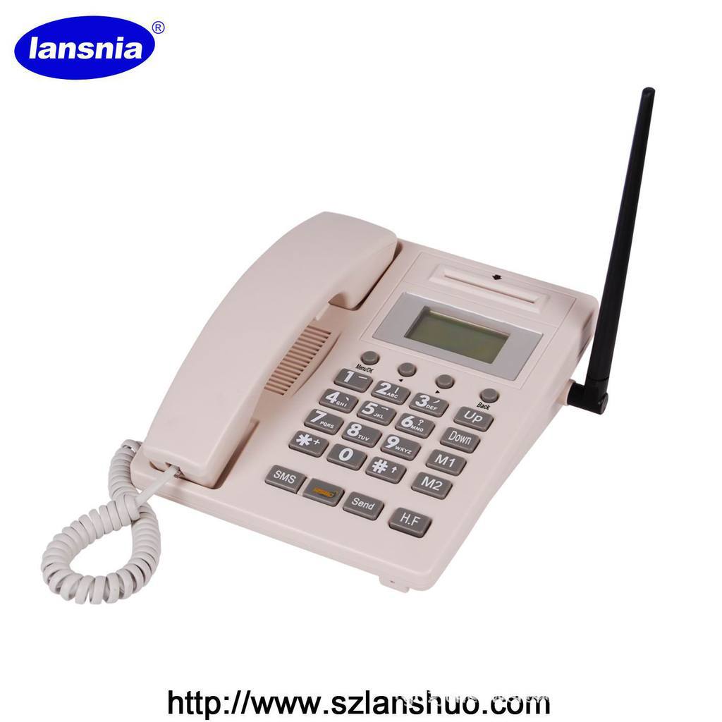 蓝硕GSM无线固定电话座机,可装入任何普通(2G)SIM卡(如:中国移动和中国联通普通(2G)SIM卡),吸取海外高端IT人才引进高端技术自主研发设计制造,采用最近研发先进高端通迅芯片。它可以直接以无线方式接入现有GSM移动通讯蜂窝网络。无需布线,安装迅速、方便,在GSM移动电话网覆盖的范围里,即开即通。该产品操作方法类似于普通的有线电话机,又有类似普通手机功能的操作。任何人都可以操作。并具有来电显示、通话记录、拨本地号码无须加拨区号以及免提等功能,大大方便了使用。它是适应现代无线通信需求的理想解决方案。可在任何无布线的场所需求所用。时尚外观,精巧设计,1.77 英寸LCD,超大容量电话本,大音量,大铃声.一体化天线,经久耐用靓丽的工程外壳,