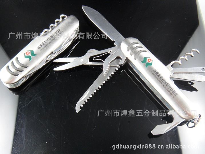 煌鑫五金制品厂专业生产多功能刀,美甲套装,指甲钳,瑞士军刀卡,多功能钳,开瓶器,钥匙扣,餐具,瑞士军刀,五金工具,广告礼品。可印LOGO,可定做各档次礼盒,起订量小,价格合适,产品美观精致,为中国联通,中国移动,中国电信,中国网通,农业银行,中信银行,五粮液,等知名企业的首选促销礼品。欢迎来电来人到我司咨询参观。