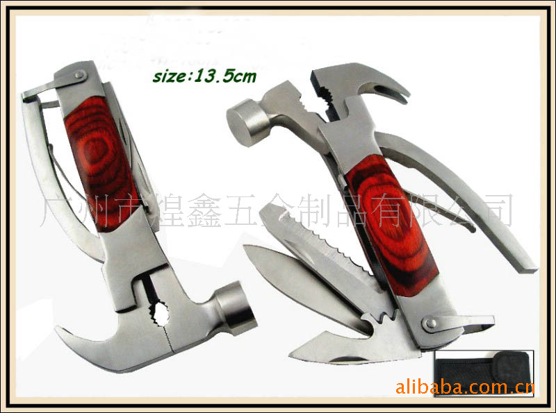 产品功能:起钉器.锤子.平嘴钳.硬线切线钳.切线钳.小刀.十字螺丝刀.大一字螺丝刀.开瓶(开罐)器、牙刀.平锉.小一字螺丝刀