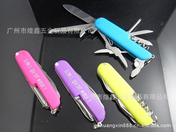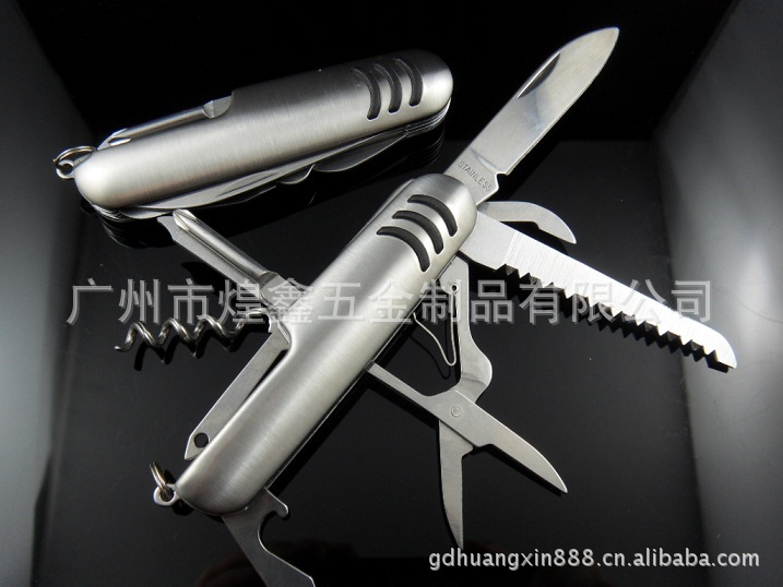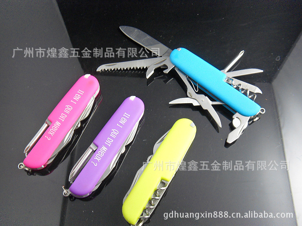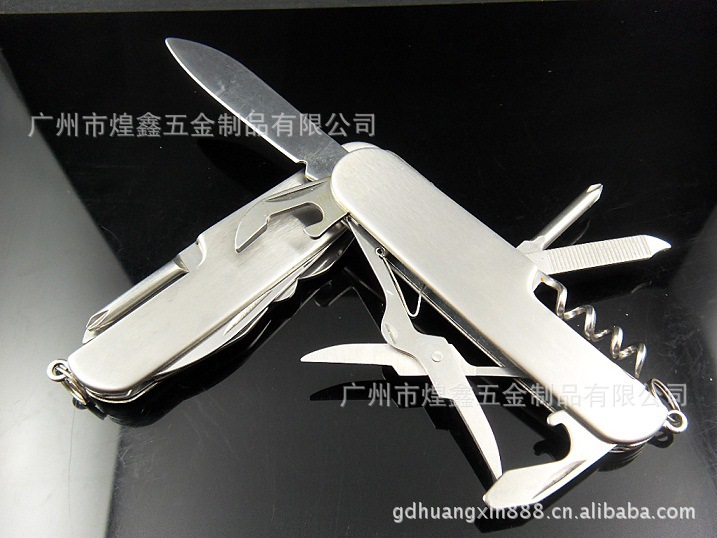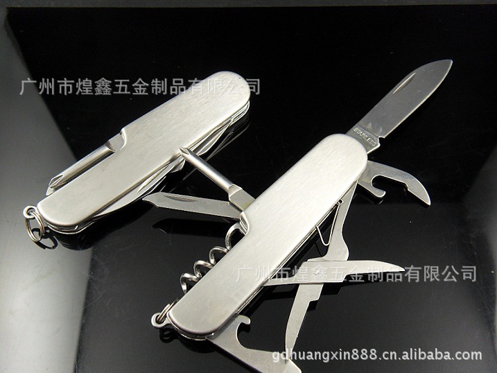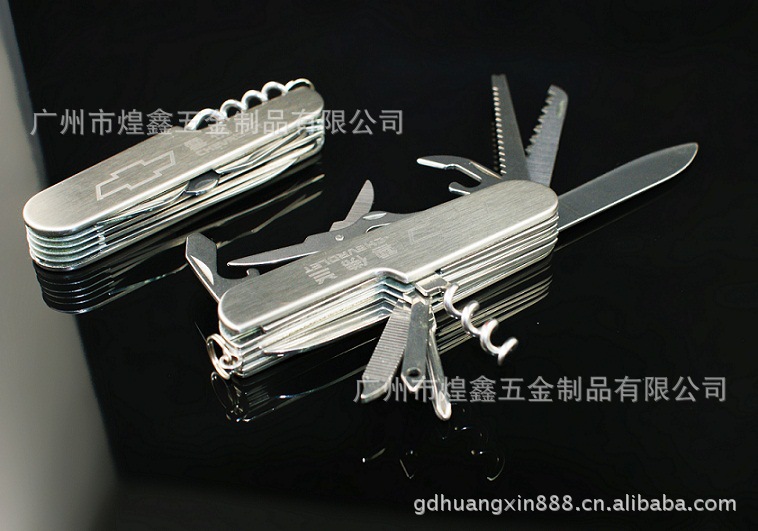 广州市煌鑫五金制品厂专业生产:多功能刀,瑞士军刀,多功能刀钳,军刀卡,工具卡,开瓶器,阳江小刀,五金工具组合,不锈钢锤子,斧头,多功能钳子,不锈钢餐具,礼品餐具,套装餐具等,产品可印LOGO,是很好的促销礼品