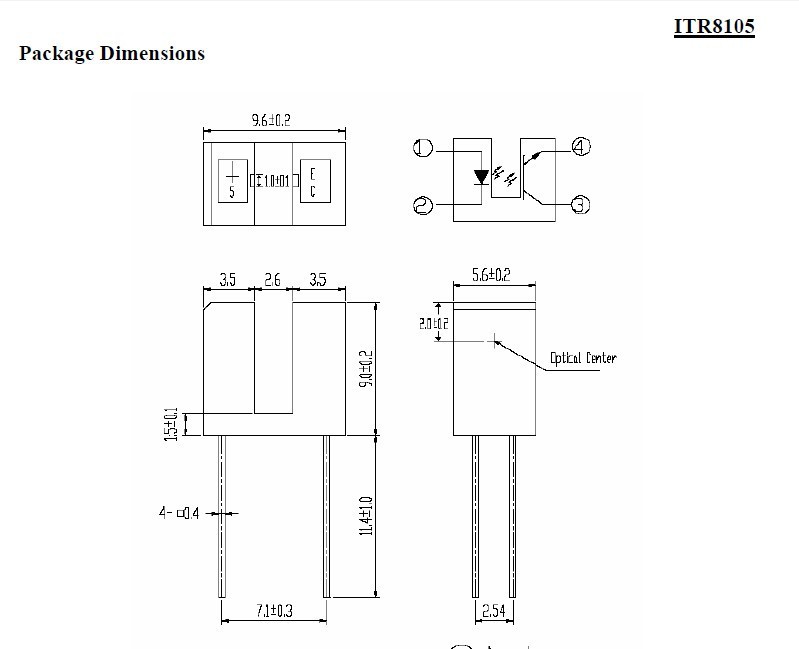 亿光槽型光电开关 光遮断器 对射式光电开关尺寸图: