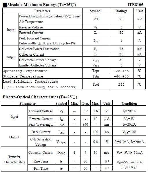 亿光槽型光电开关 光遮断器 对射式光电开关参数: