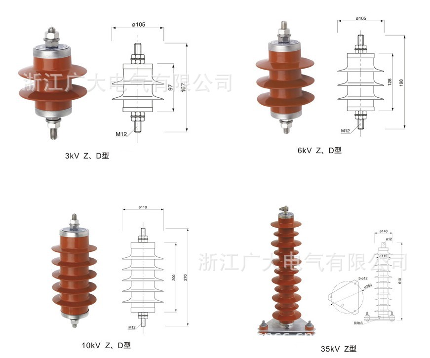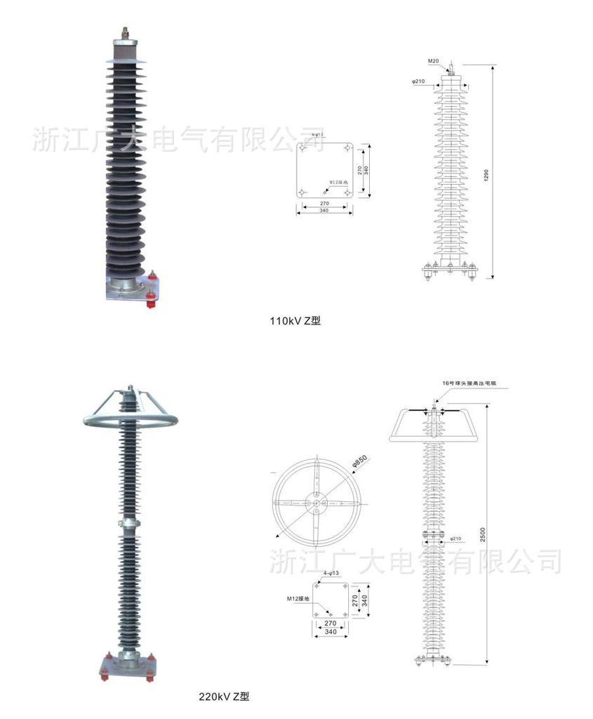 | YH5WZ-12.7/45 | 10 | 12.7 | 8.0 | 51.8 | 45 | 38.3 | 24.0 | 200 |