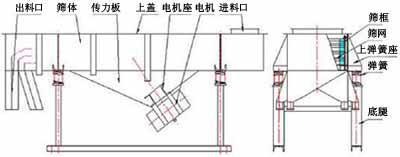 主要由筛箱、筛框、筛网、振动电机、电机台座、减振弹簧、支架等组成。