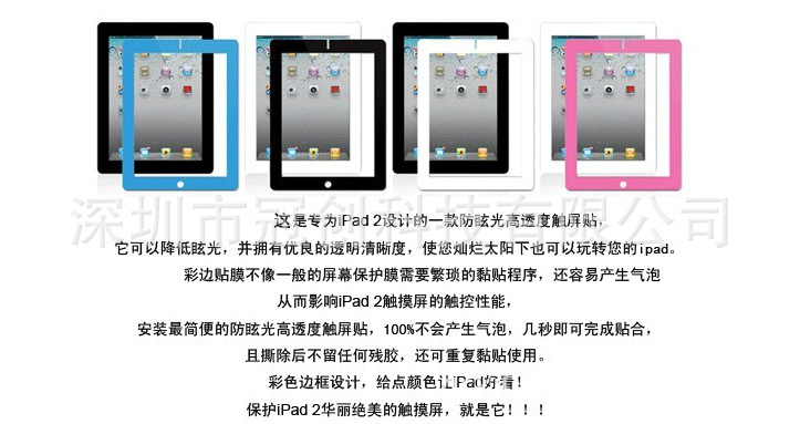 苹果ipad2/new ipad彩色边框磨砂防眩光贴膜,不同色彩体现自我个性!