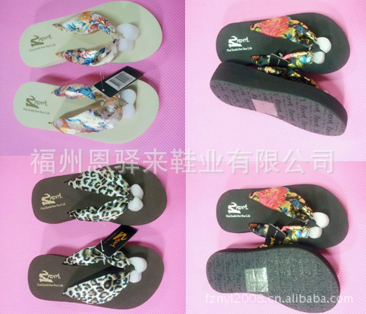 新款烫金绸带中跟防滑沙滩女鞋 宽带布带坡跟厚底松糕底防滑底 凉拖鞋 人字拖,