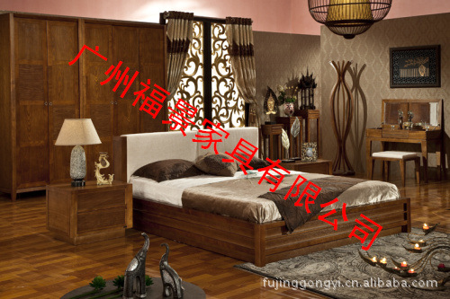广州家具厂供应东南亚风格家具 水曲柳实木双人床 三木印象家具
