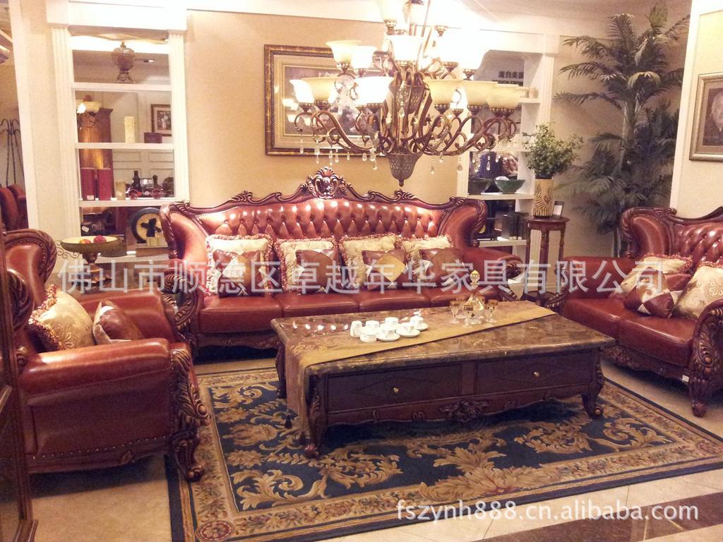 欧式古典大款实木真皮沙发