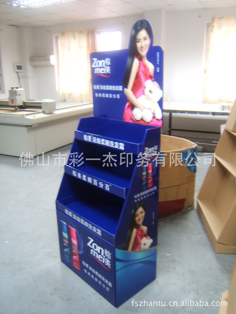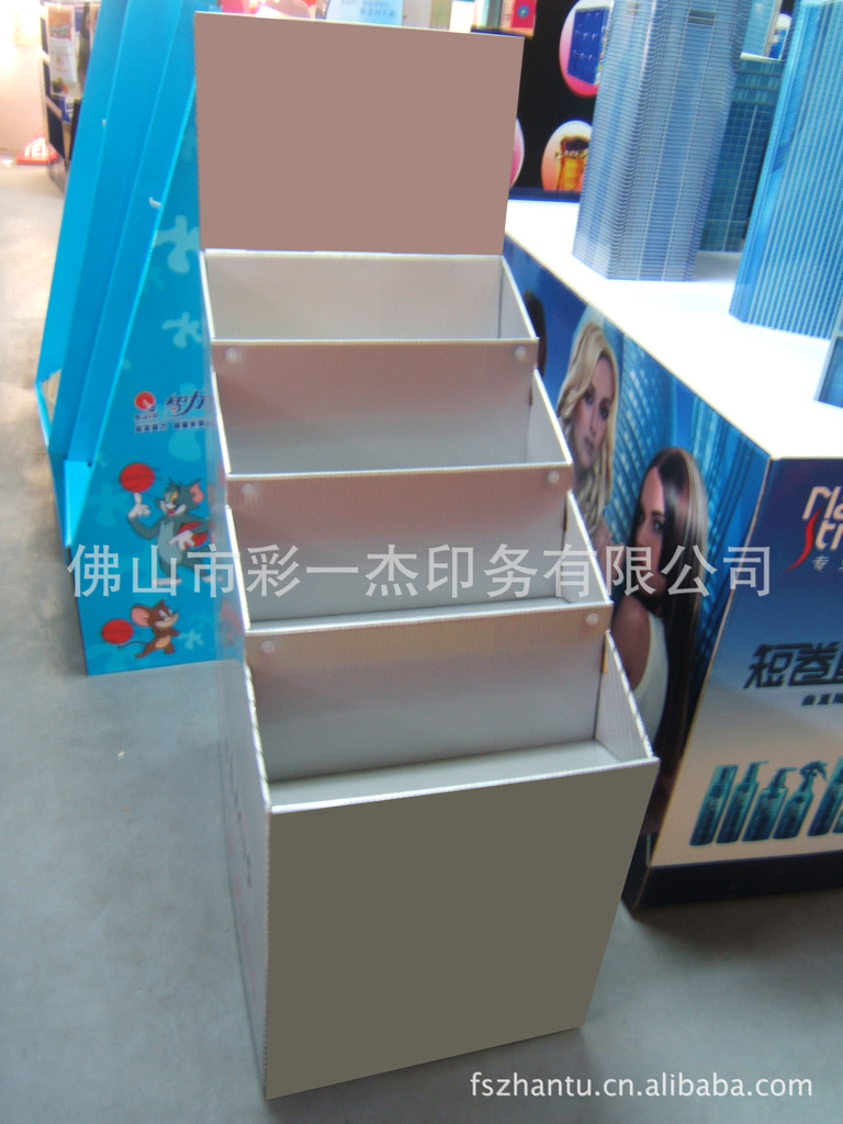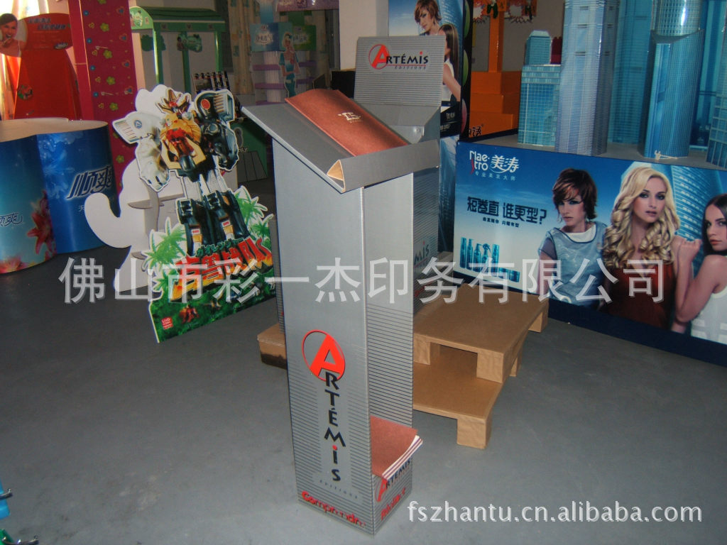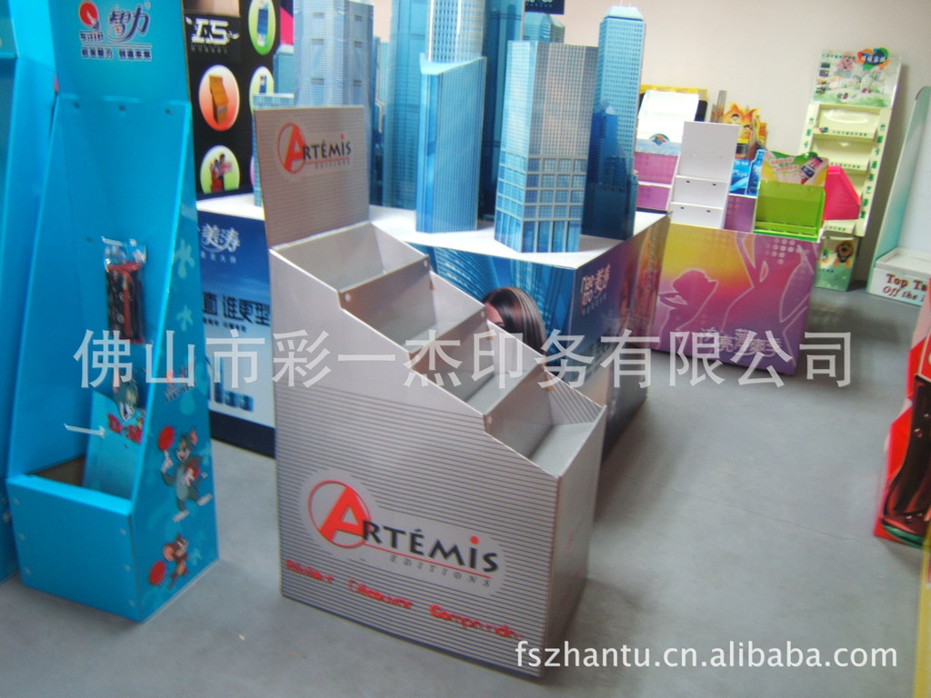 佛山市彩一杰印务有限公司是广佛地区专业设备最全的纸货架厂,专业设计、制作:纸质货架、纸展示架、纸展示盒,堆码、纸货架、纸陈列架、纸立牌等POP产品,拥有完整、科学的质量管理体系。公司拥有4000多万的印刷设备,包括(1台全电脑自动打样机、1台罗兰1.6米大型四色彩印机;2台全新海德堡四色对开机、罗兰四色对开机、1.8米大型啤机、自动裱纸机等);200多人的专业技术生产人员,通过ISO9001:2000的质量管理体系;佛山市彩一杰印务有限公司的诚信、实力和产品质量获得业界的认可。欢迎各界朋友莅临参观、指导和业务洽谈。 企业的产品需要做终端展示的时候。在选择同类展示器材中,纸货架体积最小、最轻,可拆卸折叠,也可将几套完整的纸架装,放在同一箱内,确保卖场安装的便捷;在货运上,它有着无与伦比的优势,用纸箱将纸架方正装箱标准柜里,可最大程度利用空间,不会造成空间浪费、节约物流成本,减少了 商品因不规则造成的相互撞击的损伤,确保了各个产品的完整性、美观性;另外缩短了产品上市时间,从而降低了成本,提高了产品的市场竞争力。给商家提供了整套营销计划,用轻松、便捷的服务留住客户。仓储上更不用讲了,宜摆放宜移动。
