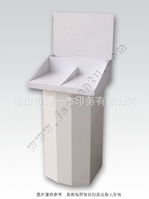 佛山市彩一杰印务有限公司是广佛地区专业设备最全的纸货架厂,专业设计、制作:纸质货架、纸展示架、纸展示盒,堆码、纸货架、纸陈列架、纸立牌等POP产品,拥有完整、科学的质量管理体系。公司拥有4000多万的印刷设备,包括(1台全电脑自动打样机、1台罗兰1.6米大型四色彩印机;2台全新海德堡四色对开机、罗兰四色对开机、1.8米大型啤机、自动裱纸机等);200多人的专业技术生产人员,通过ISO9001:2000的质量管理体系;佛山市彩一杰印务有限公司的诚信、实力和产品质量获得业界的认可。欢迎各界朋友莅临参观、指导和业务洽谈。