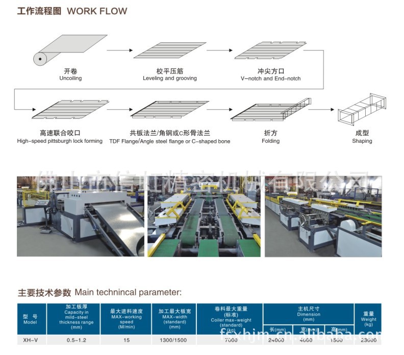 全自动风管生产线(风管生产5线)是一款高品质、高产能、低成本的共板法兰风管生产线,本线生产流程:开卷放料、送料、校平、压筋、剪角、切断东洋骨、成型法兰、折弯流程。此设备占地面积小、节能省料、操作简单、易搬迁、效率高等优点,既适合工厂批量生产,也适合工程现场快速生产。