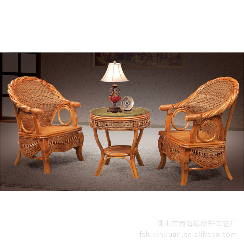 绿欣轩中式休闲系列竹藤手编蜜色带扶手休闲藤椅三件套
