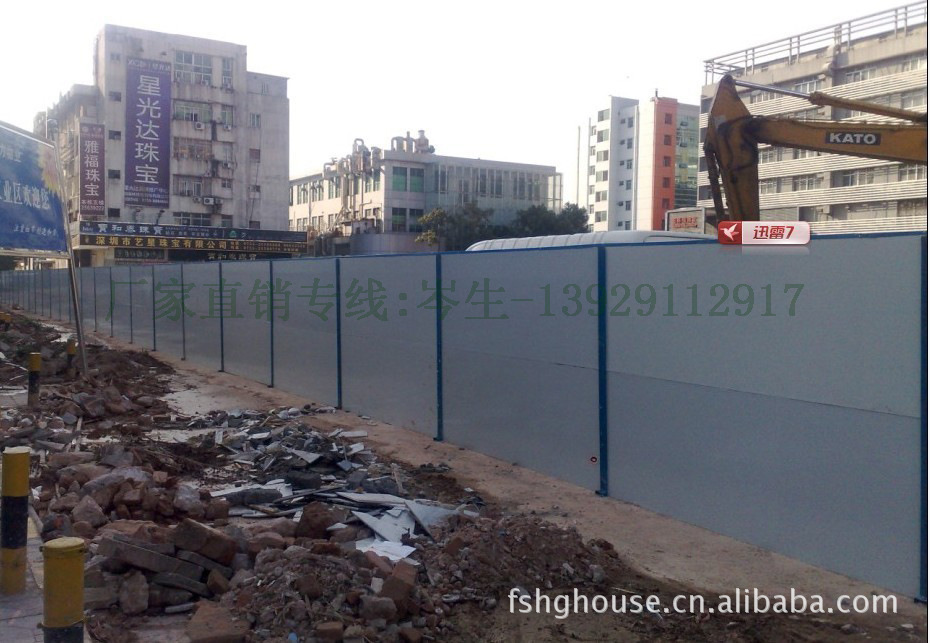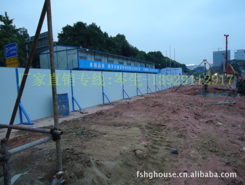 活动围墙因为其拆装便捷、损耗率低、经济环保等特点使得其可以多次循环使用而被广泛应用于道路、铁路、建筑等野外作业的临时围墙、围护栏、围挡。