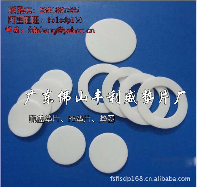 pe垫片:白色,无毒、无异味。适用于:瓶盖内衬垫,瓶子封口,药品、化妆品、化工等包装常用。