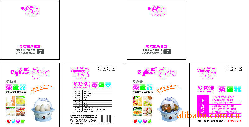大熊牌DX-3105可爱卡通造型,一次可蒸1~7~16个蛋配制测量碗,可调节蛋的生熟程度,选用自动温控器,精确控温防干烧保护,更安全,更节能,特制不锈钢发热盘,清洗方便,电源开关批示灯,工作一目了然。