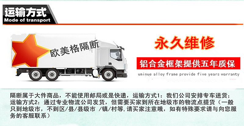 1.本公司所有产品均属欧美格,均承诺质保五年(玻璃属易碎品不在质保范围内,五金配件质保一年)。超出质保期的产品维修,仅收取成本费。