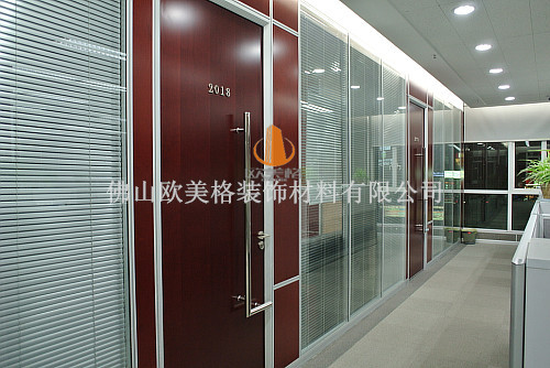 材质:5MM钢化玻璃 + 25MM中空银色铝百叶 + 9MM美国红樱桃油漆板 + 碱砂银色铝型材