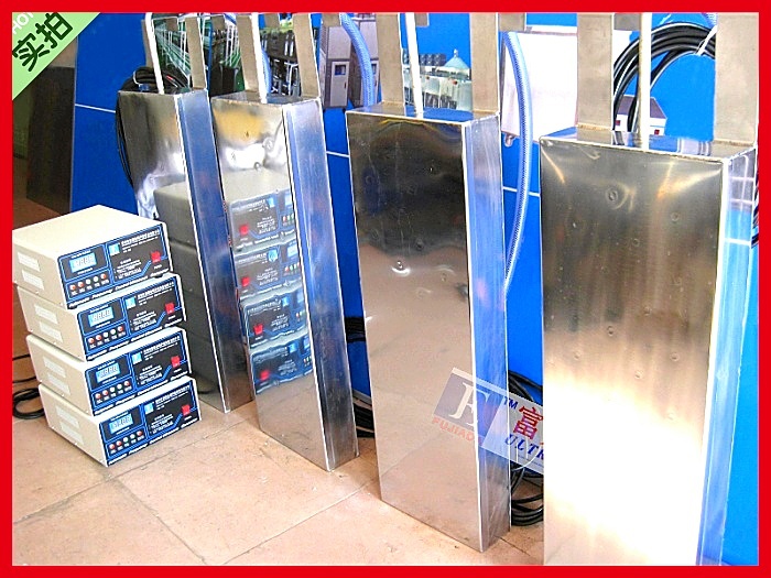 1.投入式超声波震板,由震板及超声波发生器两个部份构成,当标准型号的超声波清洗机不适用于特定工作环境时,除了可以订做特殊规格外。也可以采用投入式震板装置,改装成超声波清洗机,从而可以节约设备成本达到清洗效果。