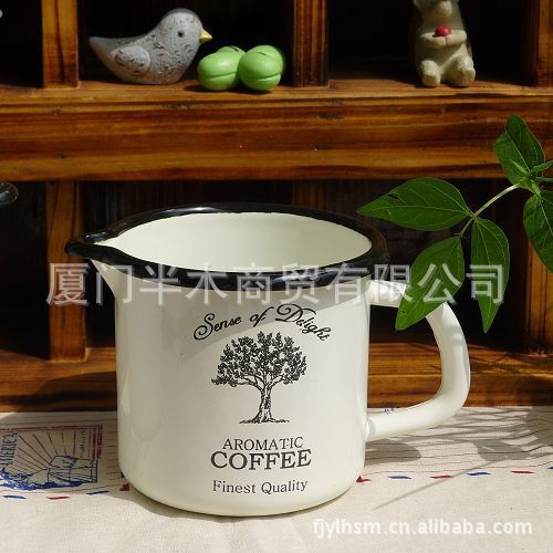 厂家直供 zakka杂货 搪瓷尖嘴杯 加厚咖啡杯 功能牛奶早餐杯TC708 材质:搪瓷 规格:口径12CM,高度10CM 颜色:米色 白色 二色可选 尖嘴,杯身及把手加厚设计。可用做倒牛奶及咖啡使用