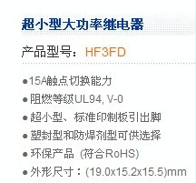 最大切换电压:277VAC /30VDC 最大切换电流:1H:15A 1Z:10A 最大切换功率 : 2770VA/300W