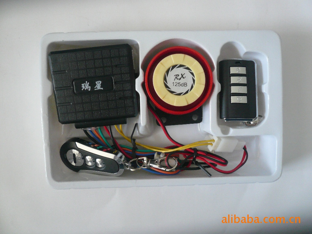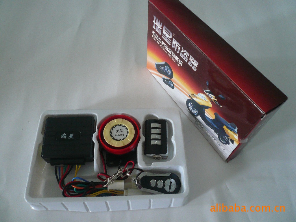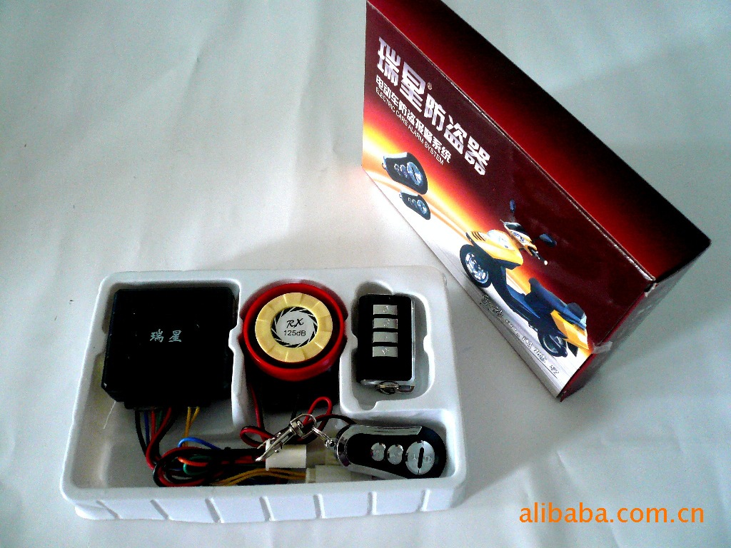瑞星品牌,主要功能:特备遥控启动功能,特配防水遥控器,特备车场寻车、防撬、防抢功能,抱死电机,推不走;主机功耗极微,断电防抢,开不走;大声报警,逃不走 ,遥控新