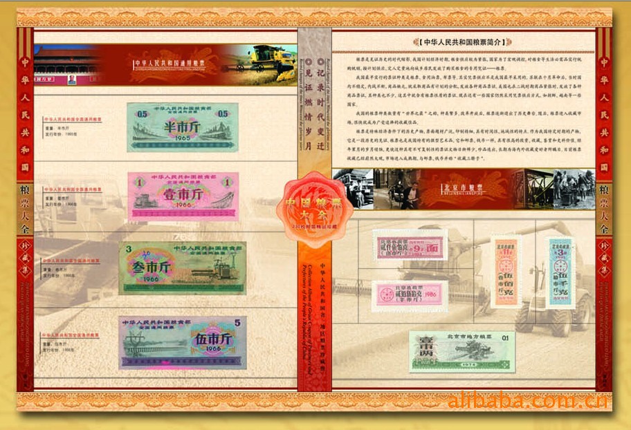 【内容】选有全国和30多个省、市、直辖市、自治区和地方的粮票、布票共计368枚。