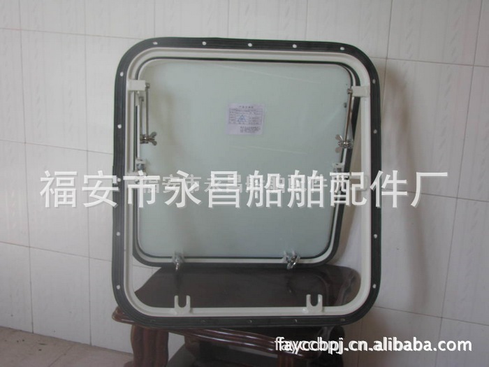 福安市永昌船舶配件厂专业生产加工:铝合金材质表面白色防腐工艺处理 双合金锁紧装置 双合金支撑装置、钢化玻璃双面贴模、水密性能良好的外上开矩形窗、形号按您的需求