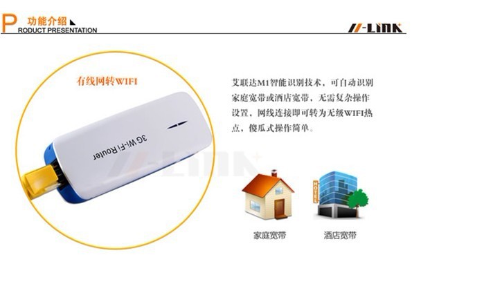 l自带RJ45口,支持宾馆模式/ADSL模式有线宽带自适应接入,支持WAN/LAN口自动识别切换