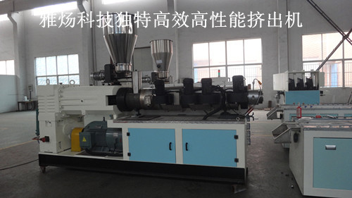 2、 锥双挤出机:设计完美,人性化,使用方便,螺杆用于高填充的聚烯烃木塑生产保一年半至两年。
