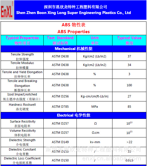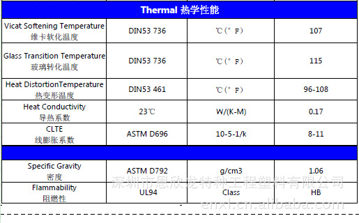 恩欣龙塑胶制品物性表: