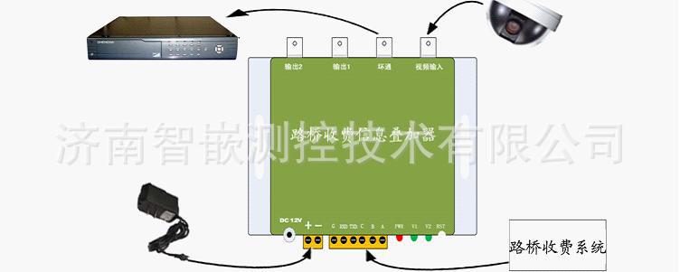 路桥视频字符叠加器是将路桥的收费系统与监控视频叠加在一起。能在管理室中看到过往车辆的实时动态信息,如:车牌号、重量、班次、票号、金额等。该收费视频字符叠加器可以应用在各种收费场所,只要收费系统的串口数据与叠加器接口协议一致就可!