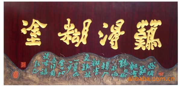 用扫青、扫绿工艺装饰字体,匾牌多采用透明涂饰,要求木材的材质细腻柔软,不易变形,节疤要少,无树脂松油。好的树种有银杏、椴木、柳安等。制作时木材要干,以免以后因干缩产生裂缝和变形。