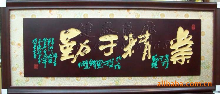 用扫青、扫绿工艺装饰字体,匾牌多采用透明涂饰,要求木材的材质细腻柔软,不易变形,节疤要少,无树脂松油。好的树种有银杏、椴木、柳安等。制作时木材要干,以免以后因干缩产生裂缝和变形。