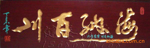 间隔12小时左右,翻转匾、牌,把字体上及四周多余的颜料倒在干净的白纸上,收集起来以备后用。留下的少量浮粉,拿小型干毛笔或底下纹笔掸字面及周围,将浮粉清理干净。扫青扫绿所使用的颜料以字的质量有很大关系,以选用遮盖力强、颗粒细腻并带有绒感的确良佛青或洋绿颜料为佳。目前市场上有一种涤纶闪光片的新型材料可代替佛青或洋绿,涤纶闪光片有金色、紫红色、青色、绿色等多种色彩,用它装饰的字闪闪发光,效果不错。