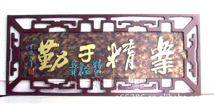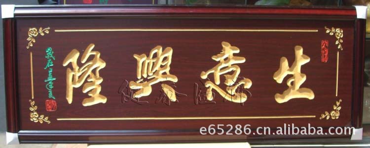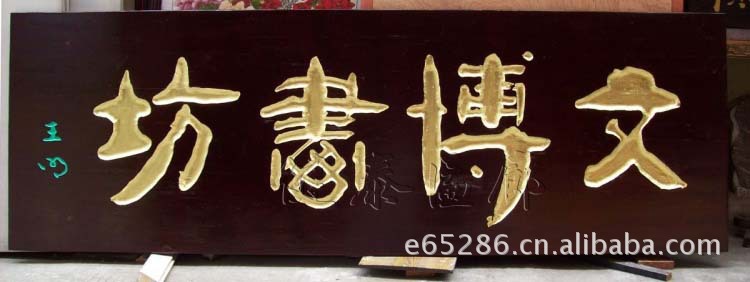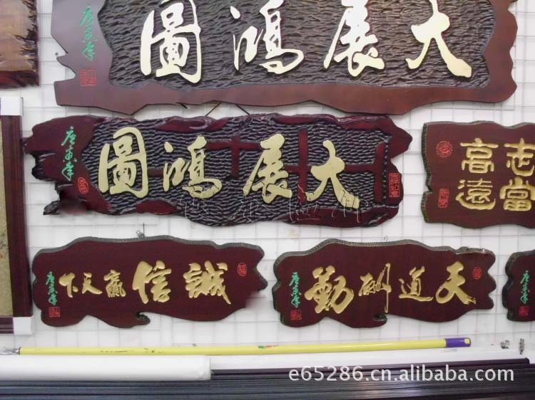 用扫青、扫绿工艺装饰字体,匾牌多采用透明涂饰,要求木材的材质细腻柔软,不易变形,节疤要少,无树脂松油。好的树种有银杏、椴木、柳安等。制作时木材要干,以免以后因干缩产生裂缝和变形。